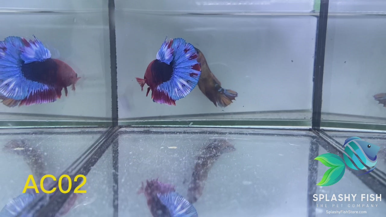 Deluxe Grade Betta Fish: Exemplary specimens with distinctive characteristics, ideally suited for individuals seeking an extraordinary addition to their aquarium. At Splashy Fish aquarium store, we meticulously hand-select each betta fish, adhering to stringent criteria to guarantee the fish's body, colors, shape, and fins are aesthetically pleasing and in optimal health. Typically, from a batch of 300 baby betta fish, only approximately 1 to 5 meet Splashy Fish's exacting standards.