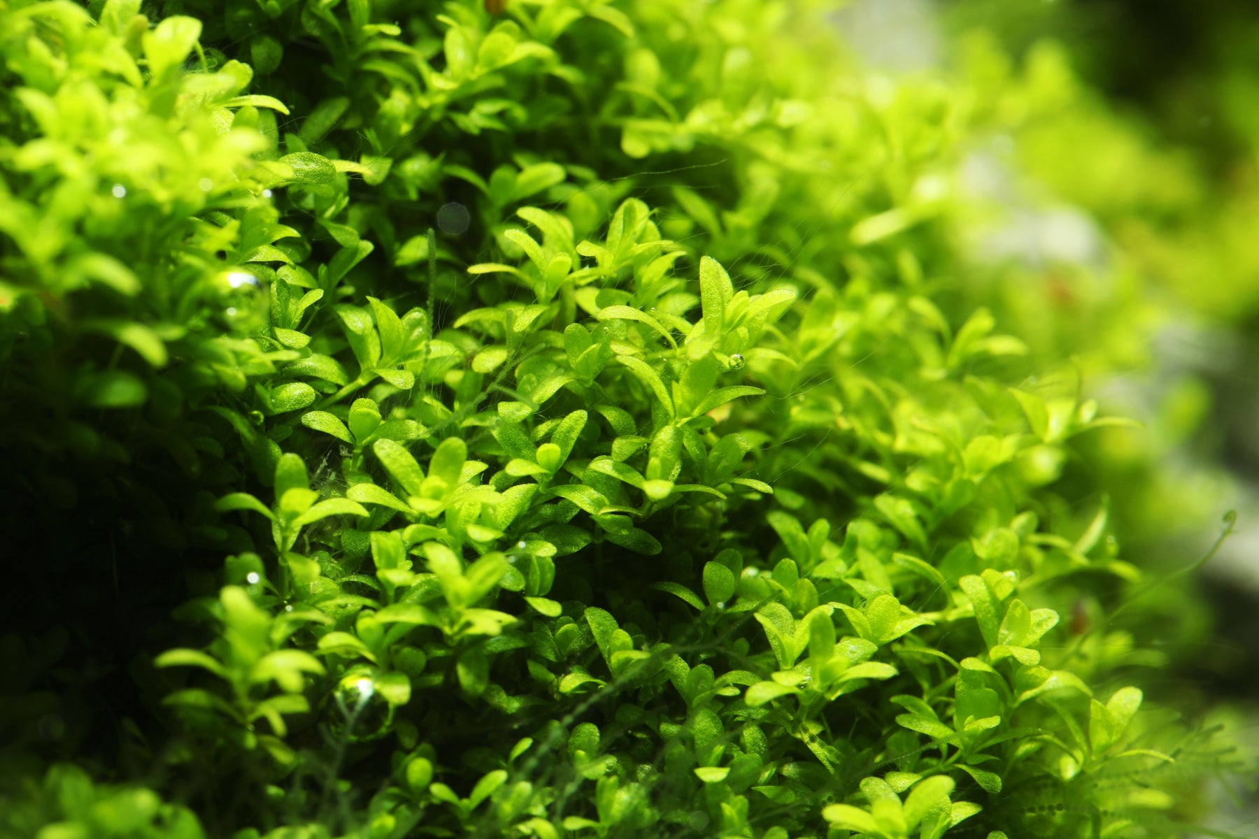 close-up of dwarf baby tears plant in aquarium tank